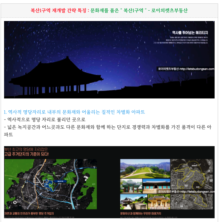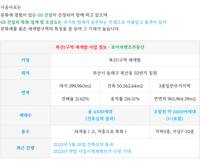 동래구 복산1구역 재개발 의 특징을 다시 한번 간략히 정리하였습니다.