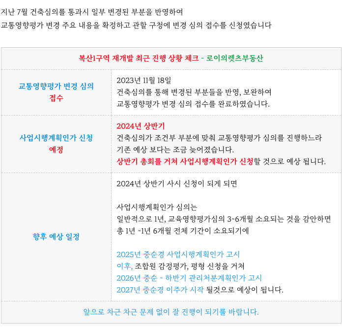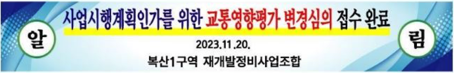 복산1구역 재개발 은 최근 교통영향평가 변경 심의(안) 신청 하였습니다.