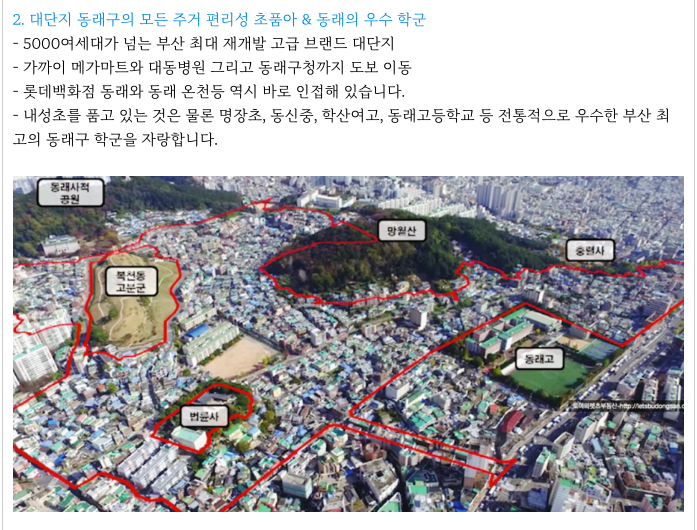 내성초등학교 (초품아)를 품고 있으며 그리고 최고 학군 (동래고등학교, 학산여고 등) 을 곁에 두고