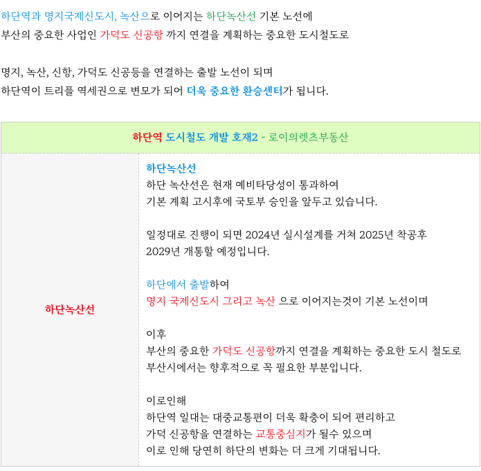 2) 하단녹산선 : 도시철도 개발호재