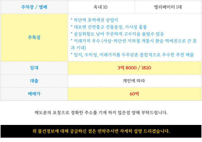 하단역의 역세권 대로변 미래가치 기대되는 상가 빌딩 매매