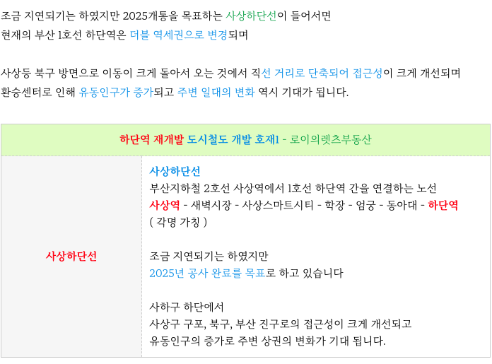 안녕하세요 로이의렛츠부동산 ( 제이에이케이 부산 부동산중개법인 ) 입니다. 오늘은 하단역 미래 가치 하...