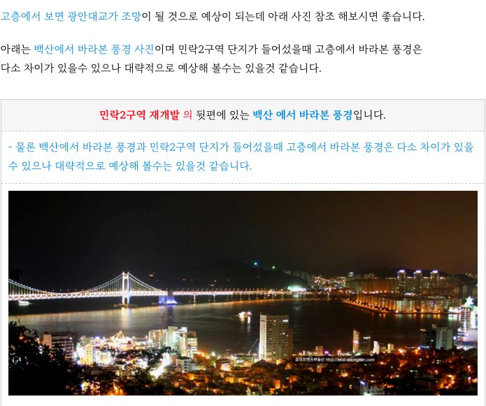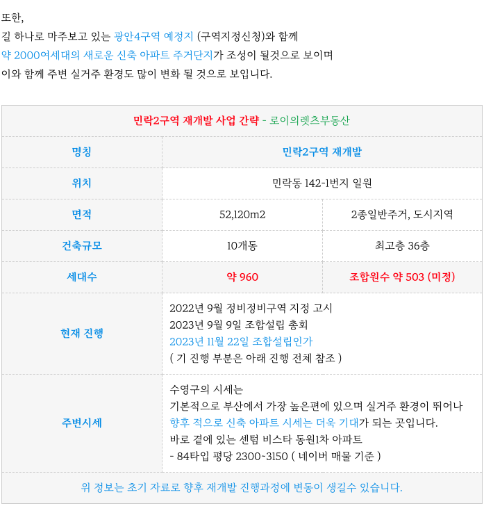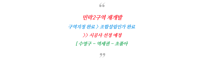민락2구역 재개발 에 관심이 있으신 분들은 연락주시면 자세히 설명드리겠습니다.