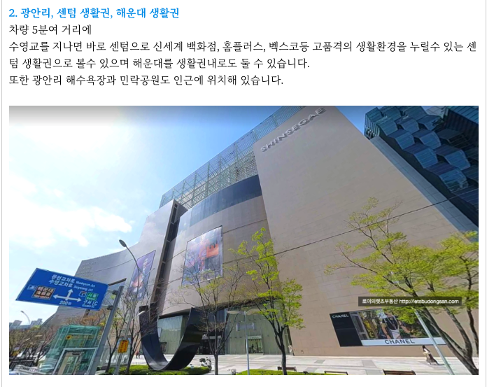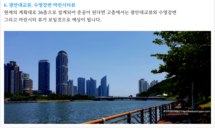 - 더블역세권, 초품아, 숲세권, 수영 강변, 센텀생활권, 빠른진행
