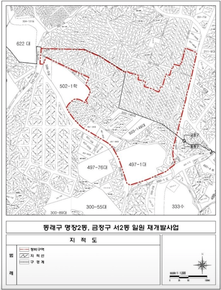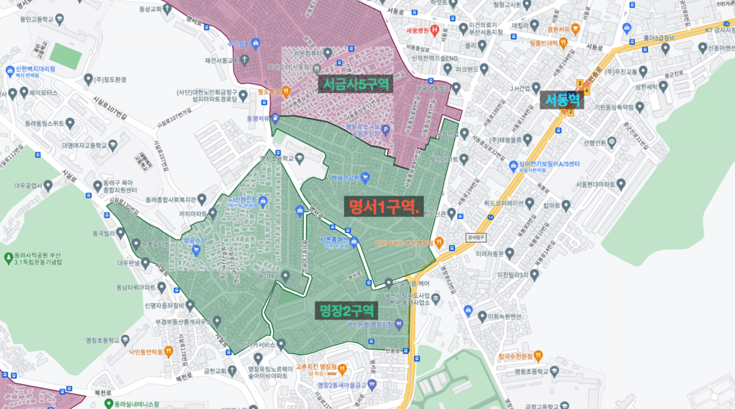 명장동과 서동이 포함되어 있어서 명서1구역으로 최종 명칭 되었습니다.