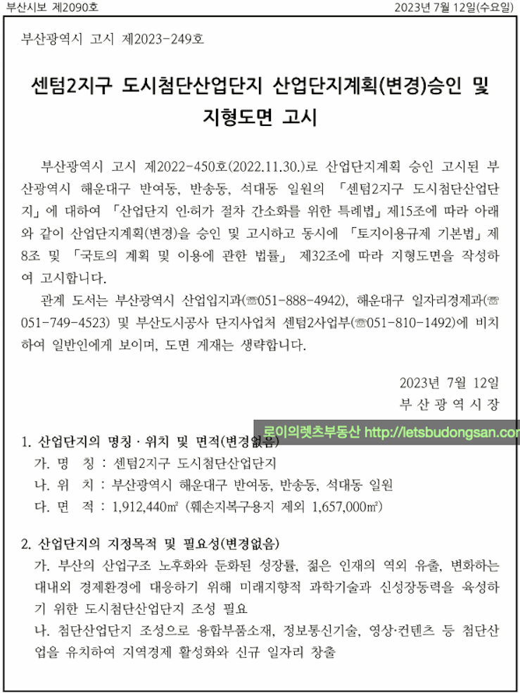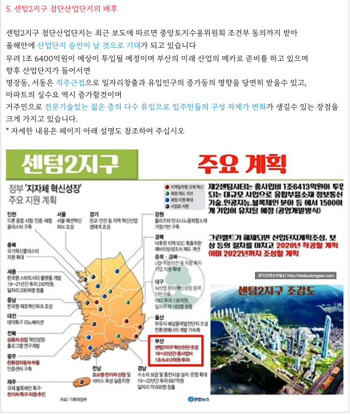 큰 개발 호재인 센텀2지구 첨단산업단지의 진행상황은