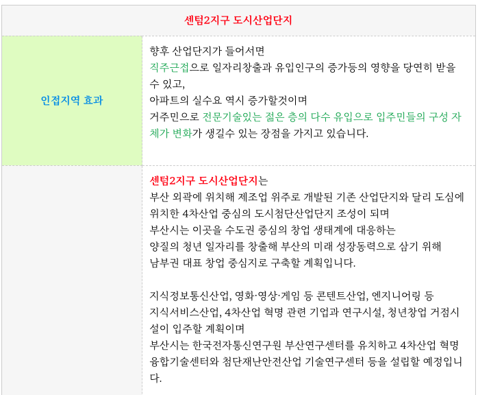 센텀2지구 첨단산업단지가 조성이 되면 직주 근접의 배후 단지로 수요가 증가 할 것이며