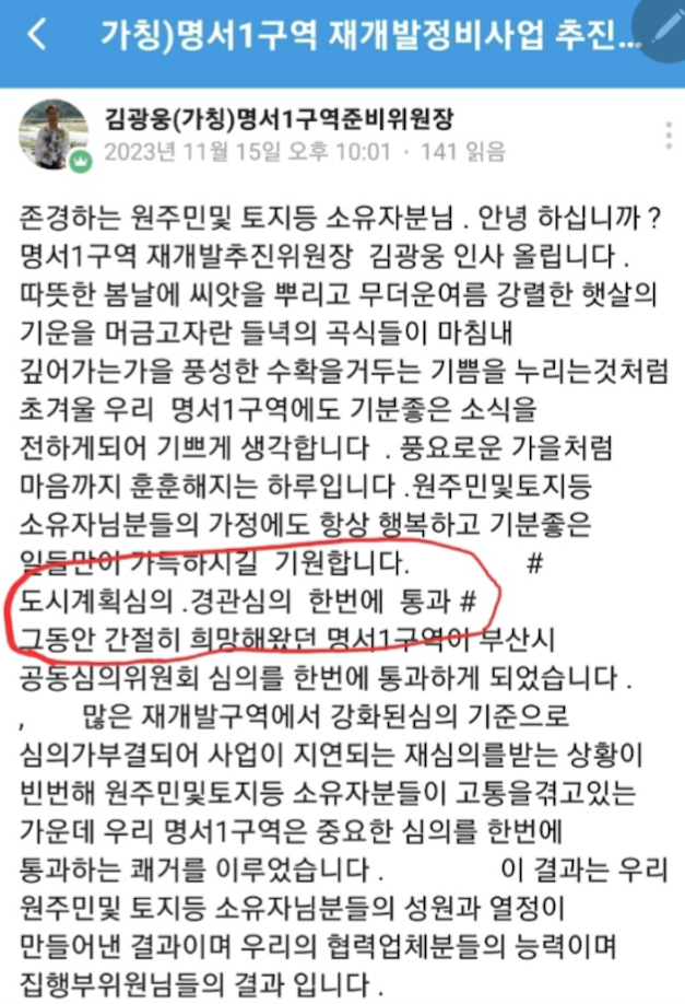 명서1구역 재개발에 대해 관심이 있으신 분들은 연락주시면 자세히 설명 드리겠습니다.