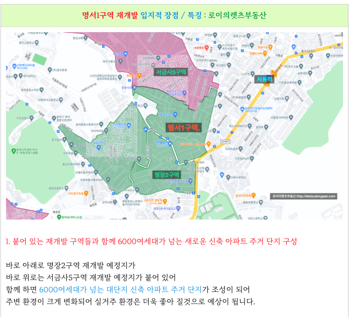 명서1구역 재개발 예정지의 입지적 특징을 다시 한번 정리해 드립니다.