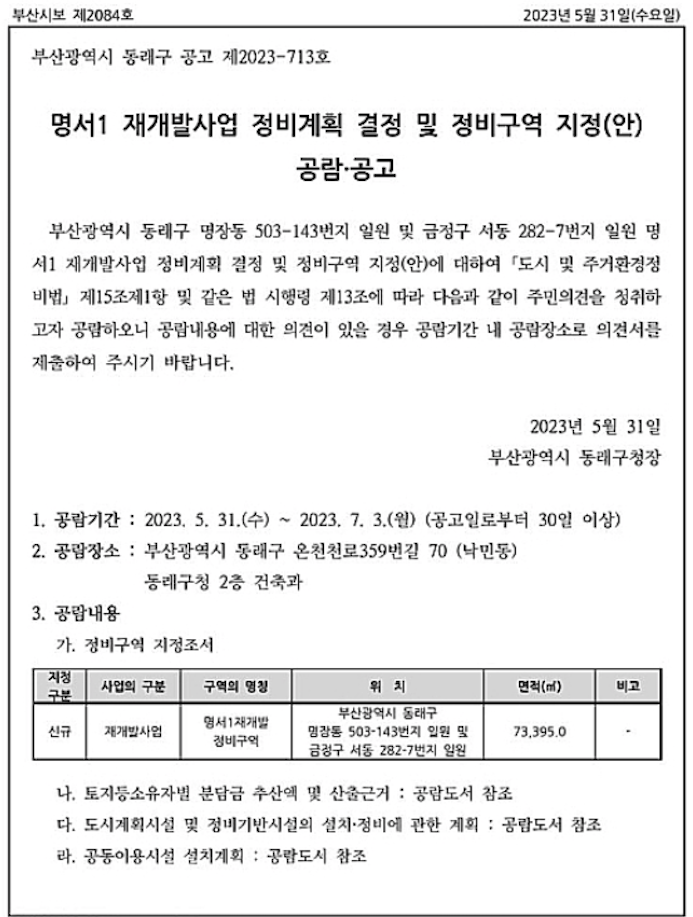 명서1구역 재개발 최근 진행 상황 & 물건 정보