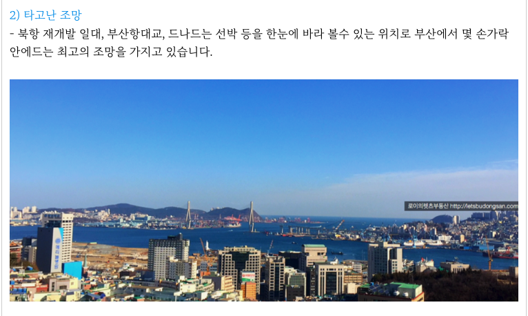 부산의 가장 큰 변화가 있을 북항재개발을 한눈에 바라다 보는 것고 그 배후지가 가장 큰 특징으로