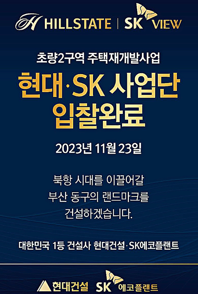 초량2구역 재개발 은 우여곡절끝에 새로운 시공사로 현대 + SK 컨소시엄이 유력해 지고있습니다.