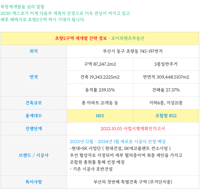 초량2구역 재개발의 주요 특징을 간략히 정리하였습니다.