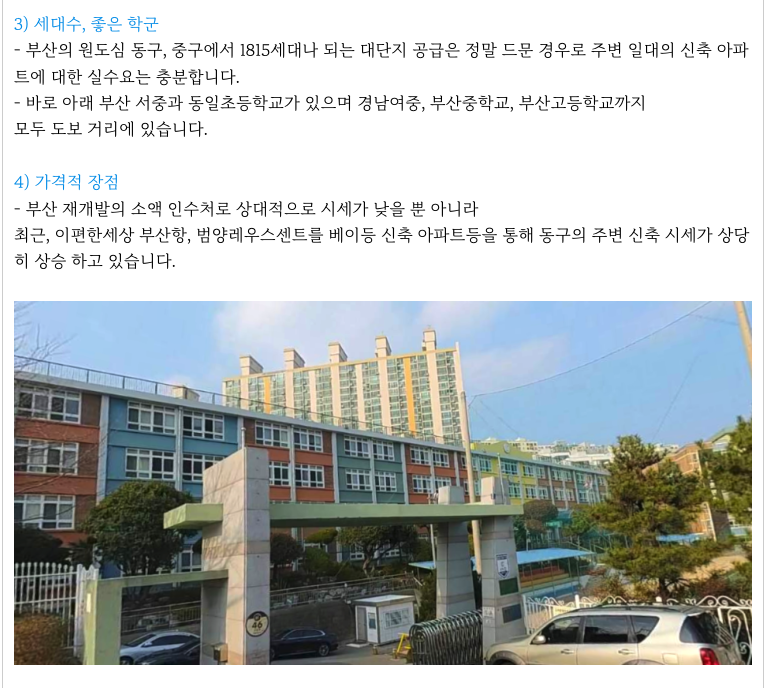 부산서중, 부산중학교, 경남여자중학교 부산고등학교 등 우수 학군이 위치해 있습니다.