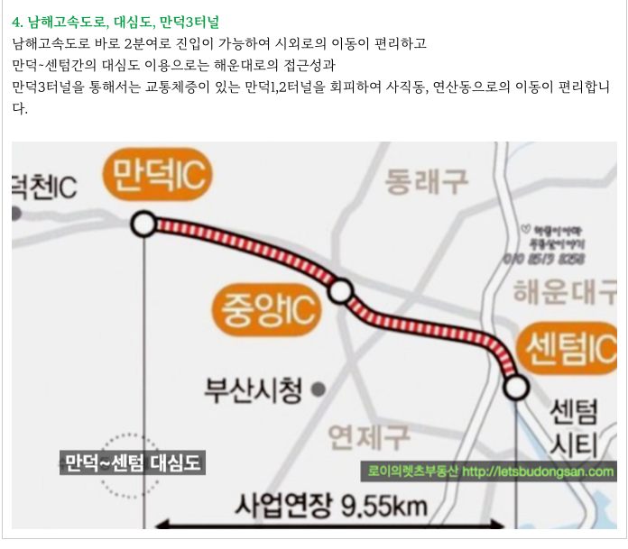 만덕~센텀 대심도를 이용하면 해운대로의 접근성 역시 우수해 지게 됩니다.