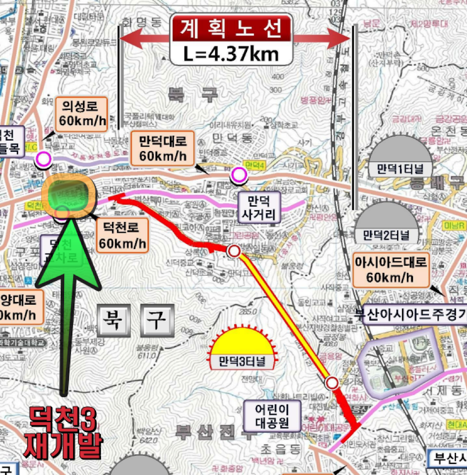 제3만덕터널 개통으로 기존 만덕1,2터널의 교통 체증을 회패하여 부산 시내로의 접근과