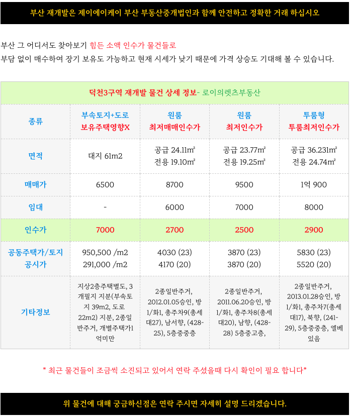 (숙등역) 덕천3구역 재개발 예정지 - 소액 인수 매물- 2500부터
