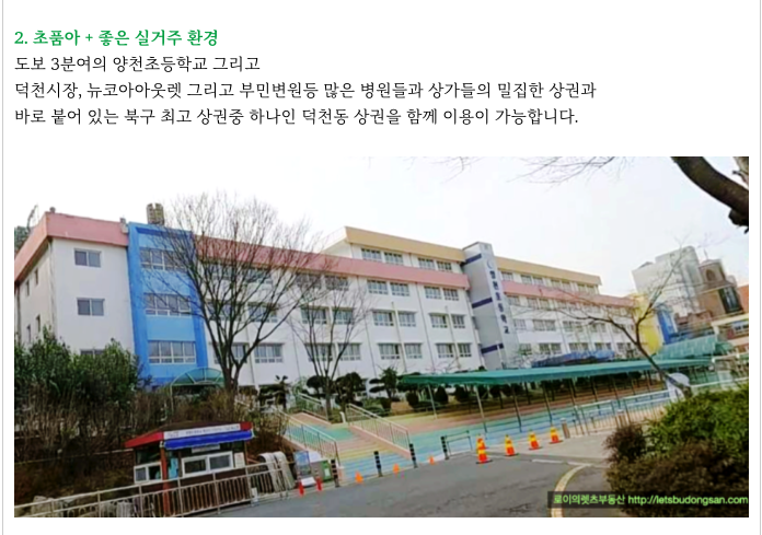 북구에서 가장 큰 상권중 하나인는 덕천동 상권의 바로 인근으로 생활 인프라가 편리하고