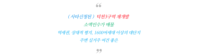 역세권 덕천3구역 재개발 의 간략한 특징을 다시 한번 정리하여 드립니다.