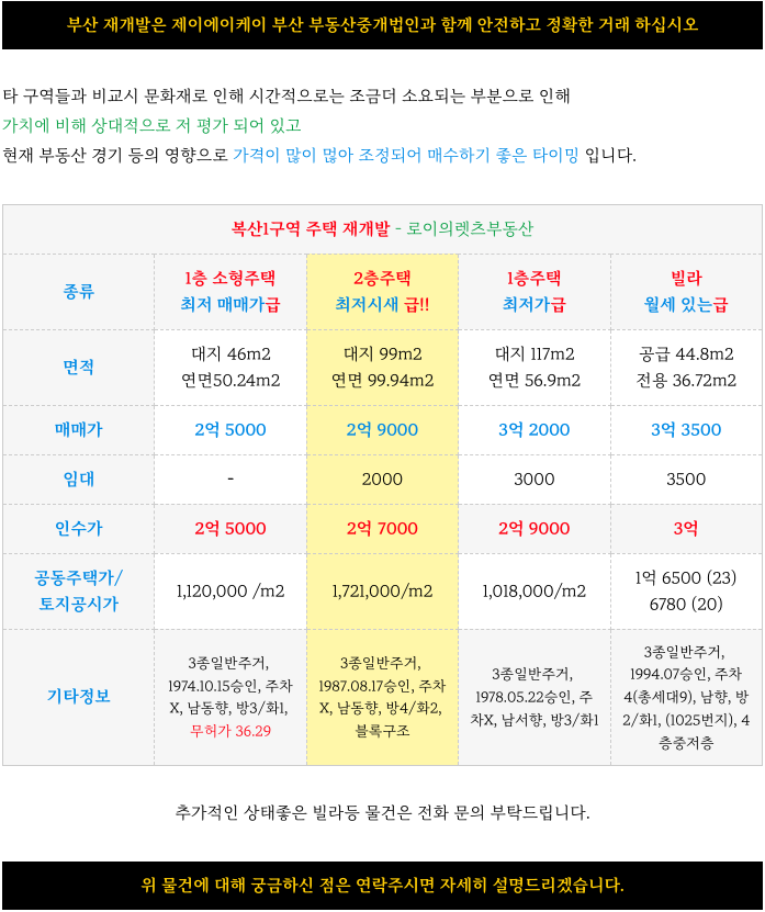 복산1구역 재개발 금일 접수된 물건등 급매 매물들만 정리하여 소개해 드립니다.