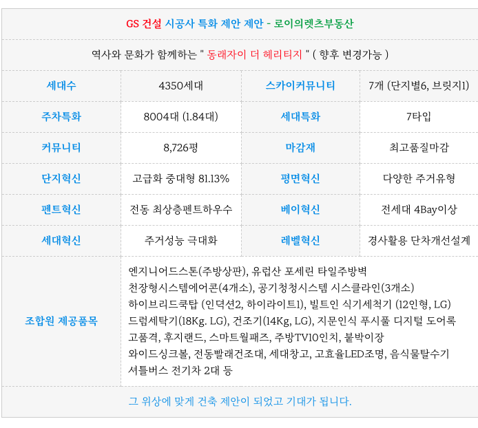 브랜드 대단지로 문화재와 함께 하는 차별화 신축 아파트로 조성이 되는 것이 가장 큰 특징입니다.