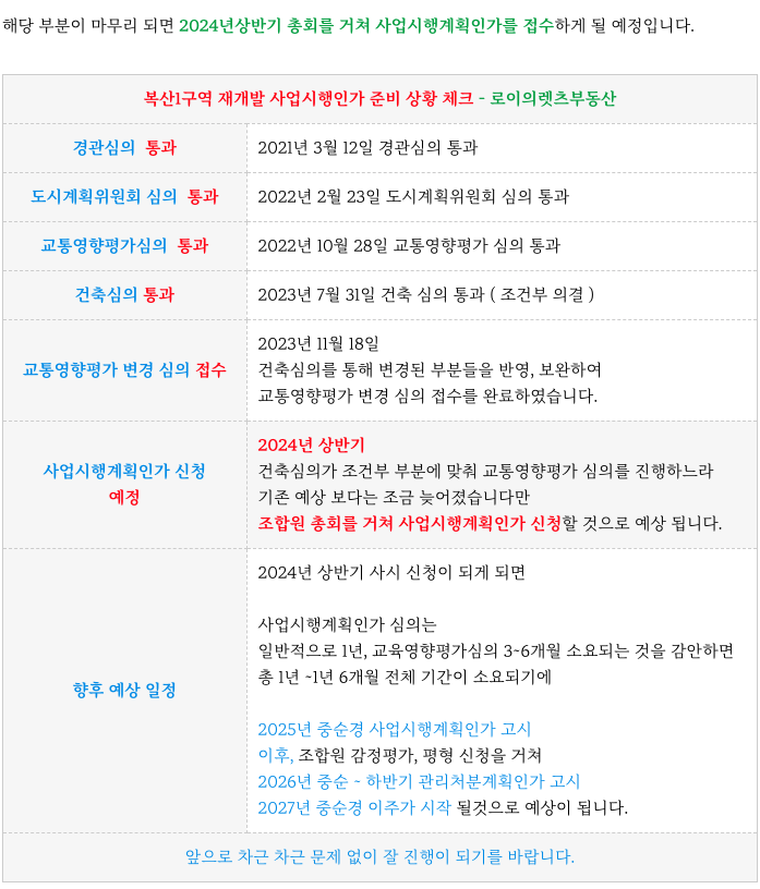 복산1구역 재개발 및 부산 전역 재개발에 대해 궁금하신점은 연락주시면 자세히 설명 드리겠습니다.