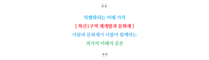 사람과 문화재가 더불어 함께하는 재개발 구역이라고 할 수 있습니다.
