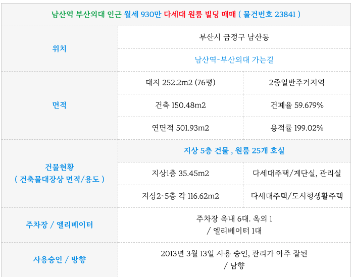 남산역 부산외대 월세 930만! 원룸 빌딩 매매 (원룸통매매)