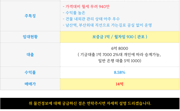 남산역 부산외대 인근 월세 930만 다세대 원룸 빌딩 매매 물건 소개해 드립니다.