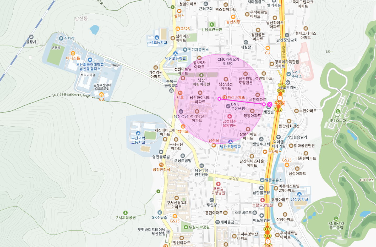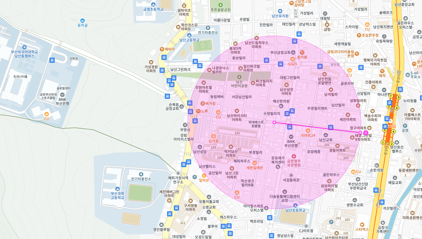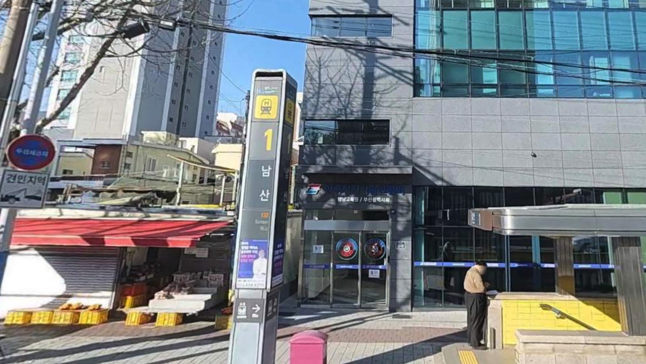 남산역에서 부산외대 직선거리 도로에 위치하고 있고