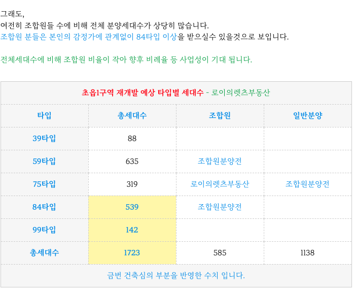 초읍1구역 재개발 현재 타입별 세대수 입니다.