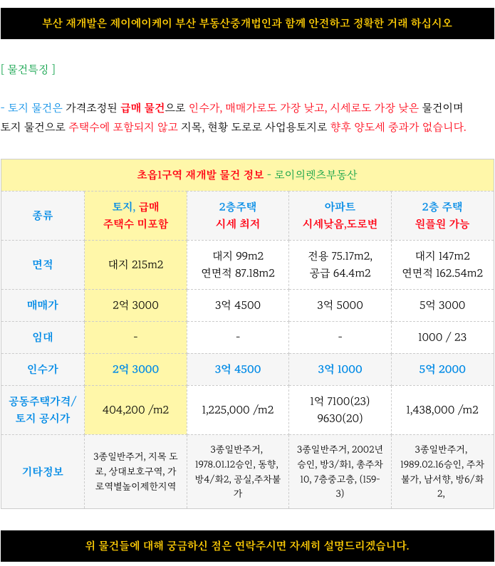 초읍1구역 재개발의 가격 조정되어 더욱 매력적인 급매 토지 물건 등 소개 하여 드리겠습니다.