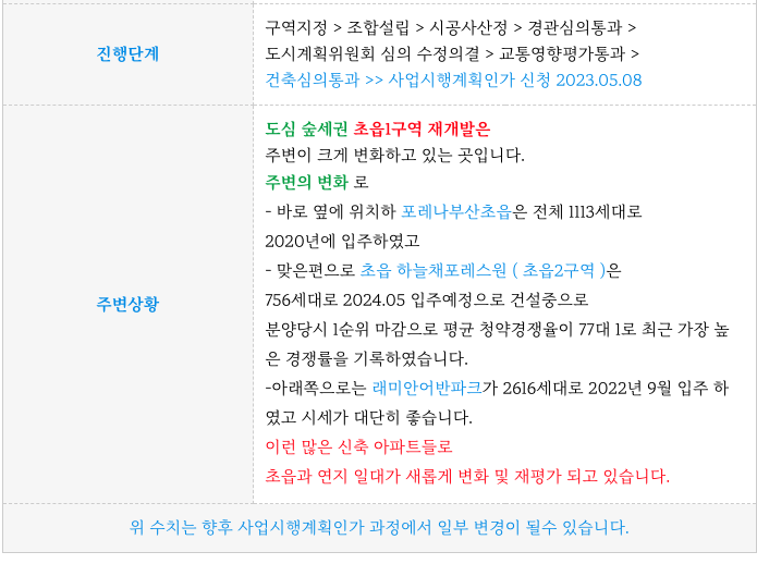 도심숲세권 초읍1구역 재개발 가격 최저 급매 토지 매물