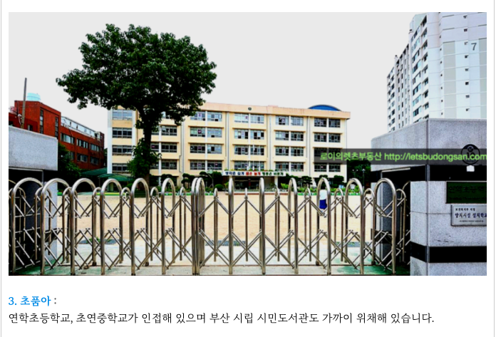연학초, 초연중학교가 바로 가까이에 있는 초품아로 편리하게 도보 통학이 가능하고