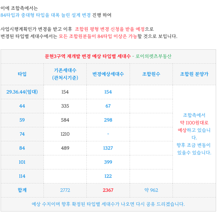 문현3구역 재개발 타입별 세대수 체크해 드립니다.