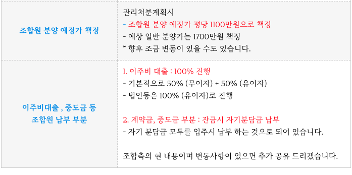 - 골든타임분양, 이주비대출 100%, 조합원 자기 분담금 100% 입주시 납부 등