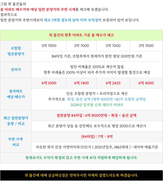 비례율 배제하고 프리미엄을 더한다 하여도 현 주변 신축보다 낮은 가격으로 인수하게 되어