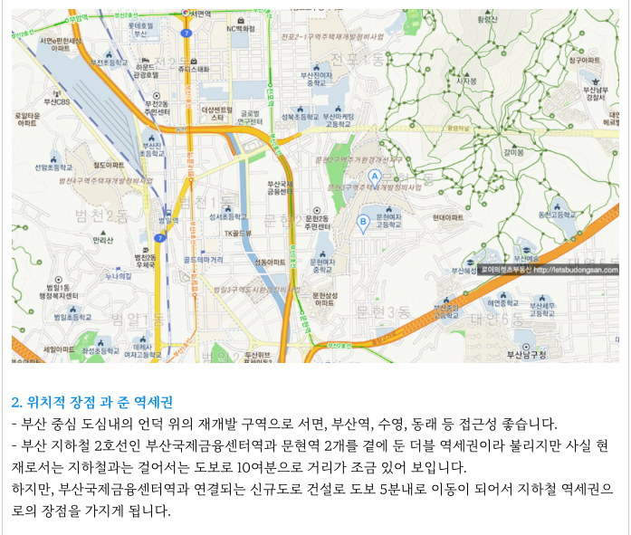 중심부와 상단은 부산 금융센터단지역에서 직선거리는 300여미터밖에 되지 않지만