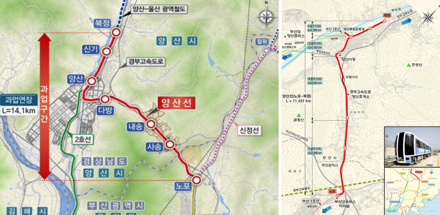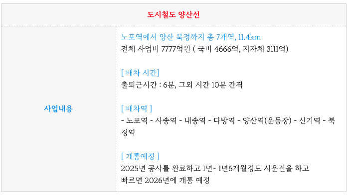 특히나. 지하철 1호선의 연장인 양산선의 연결로 부산 접근성이 아주 우수하다는 점 입니다.