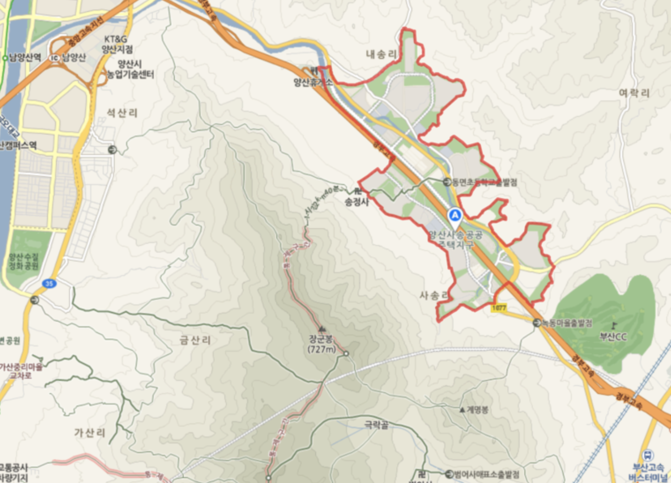 양산시 동면 사송리와 내송리 일대에 진행중인 신도시로