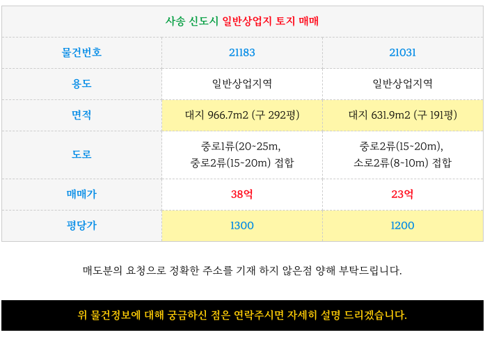 오늘 사송신도시 일반상업지 토지 매매 물건 정리 해드립니다.