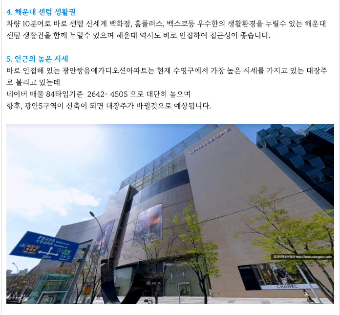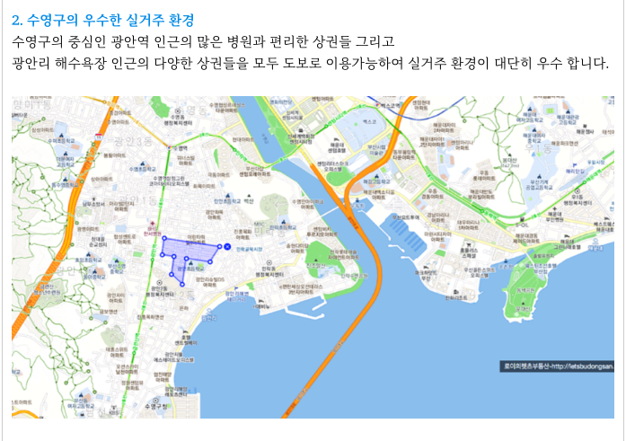 - 수영구 중심 광안동, 광안리 해수욕장, 주변시세 높은