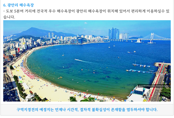 광안5구역 재개발 예정지의 특징 들을 다시 한번 간략히 정리하였습니다.