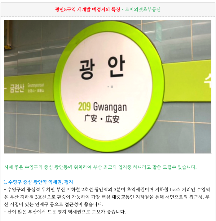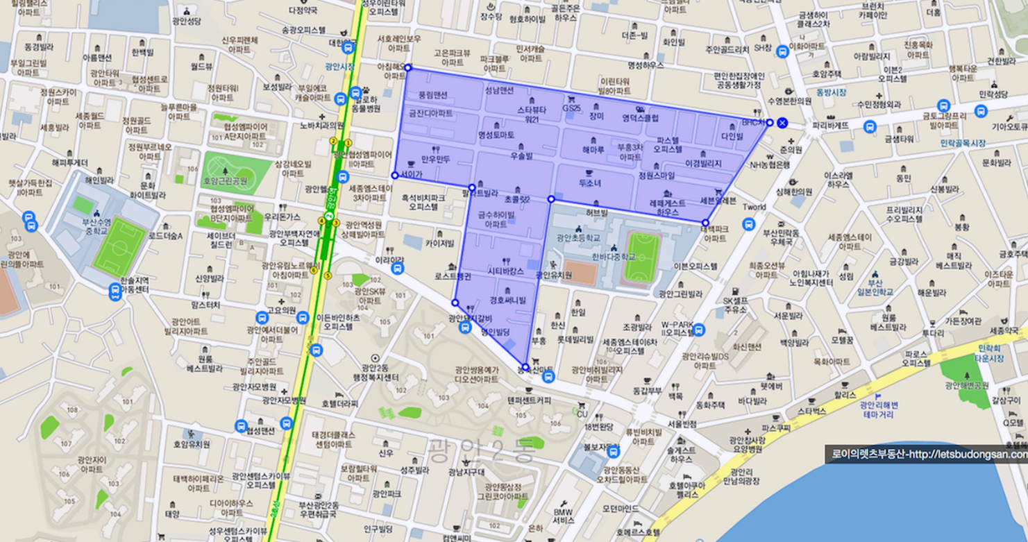 부산의 많은 예정지 중에서도 가장 거래가 많았고 실수요도 높은 곳중에 하나가 광안5구역 예정지 이며