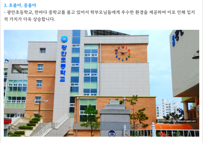 광안초등학교, 한바다 중학교를 품고 있는 초,중품아의 장점은 가지며