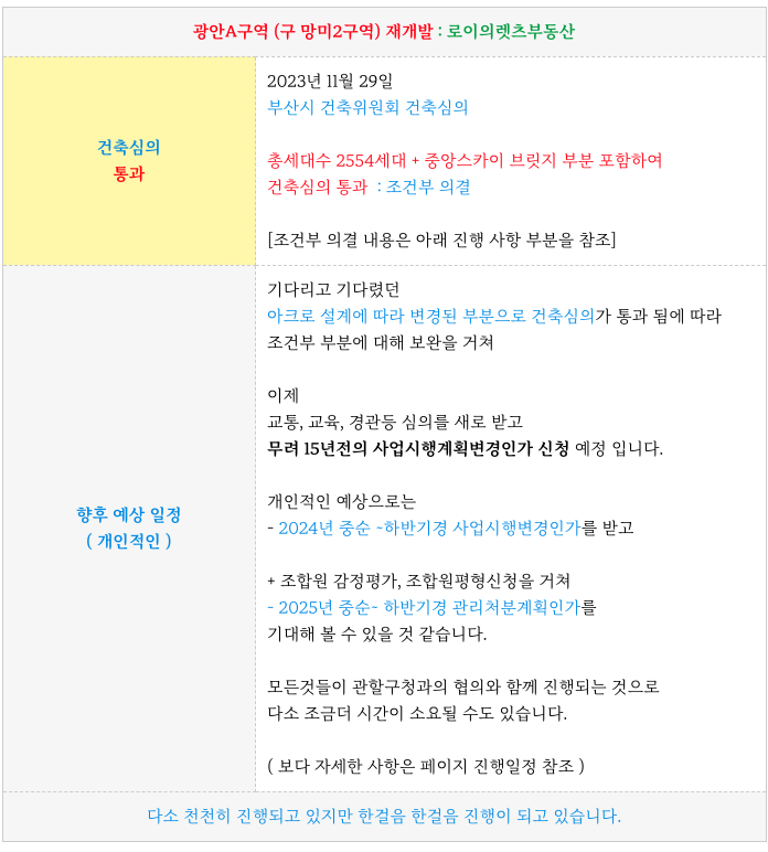 (건축심의통과!) 광안A구역 재개발 진행 일정 & 현 최저 매물 : 구 망미2구역