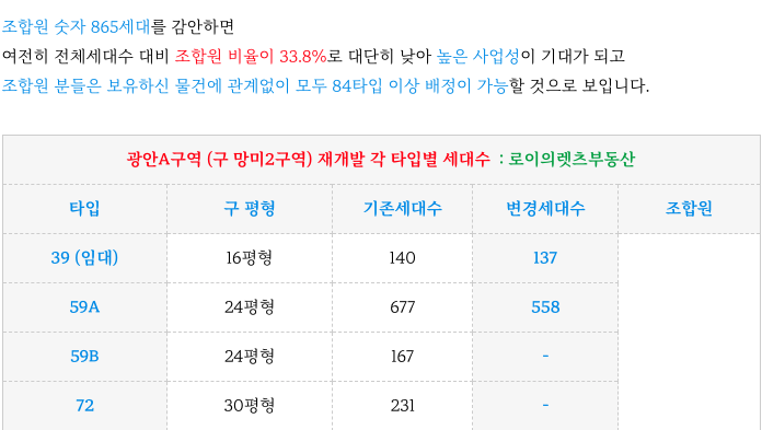 사업성으로도 ( 조합원 비율 33.8% - 세대수 2554 조합원 865 )