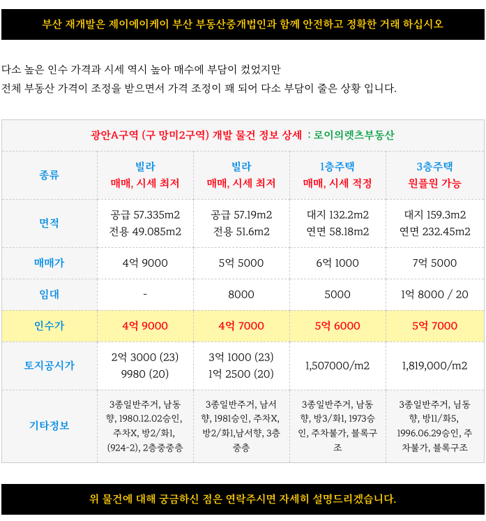 광안A구역 재개발 현 최저 매물 정보 소개해 드리겠습니다.