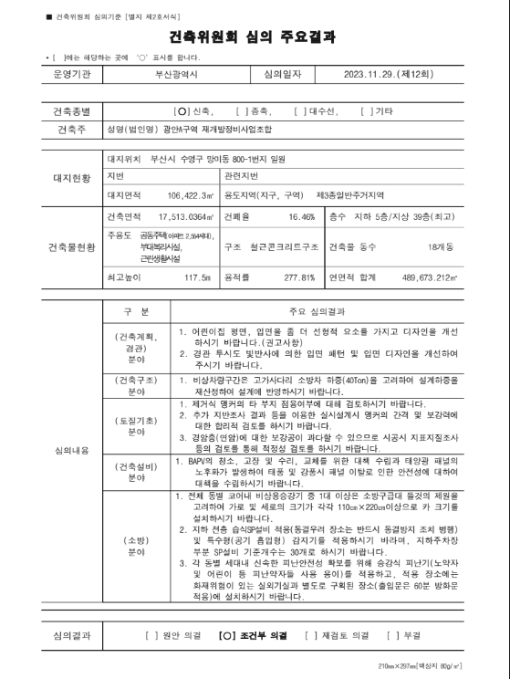 가장 중요한 포인트 건축심의가 통과 함에 따라