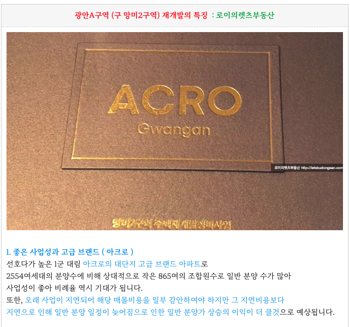 - 높은사업성, 고급브랜드 (아크로)